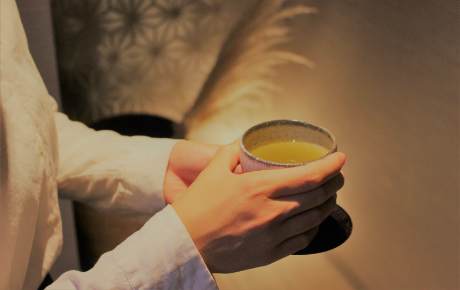 施術後にお出しするお茶は日本人に一番馴染みのある緑茶に 少し抹茶と玄米が香るものを。